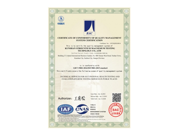 昆山锶镁检测技术有限公司-质量管理体系证书